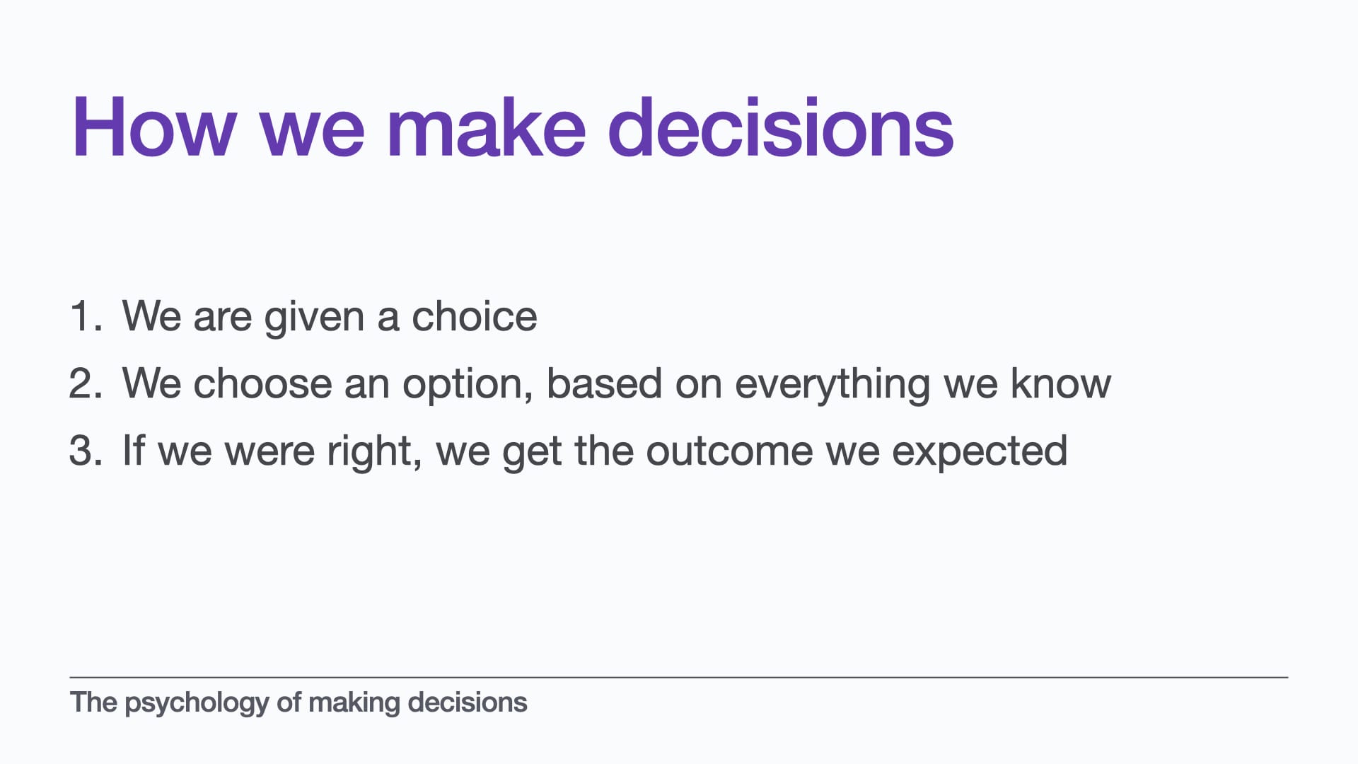 We’re going to look at some of the theory and science behind making decisions.