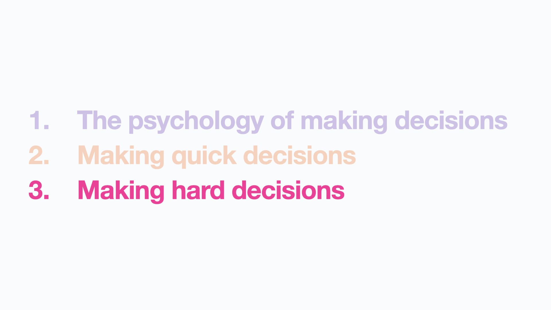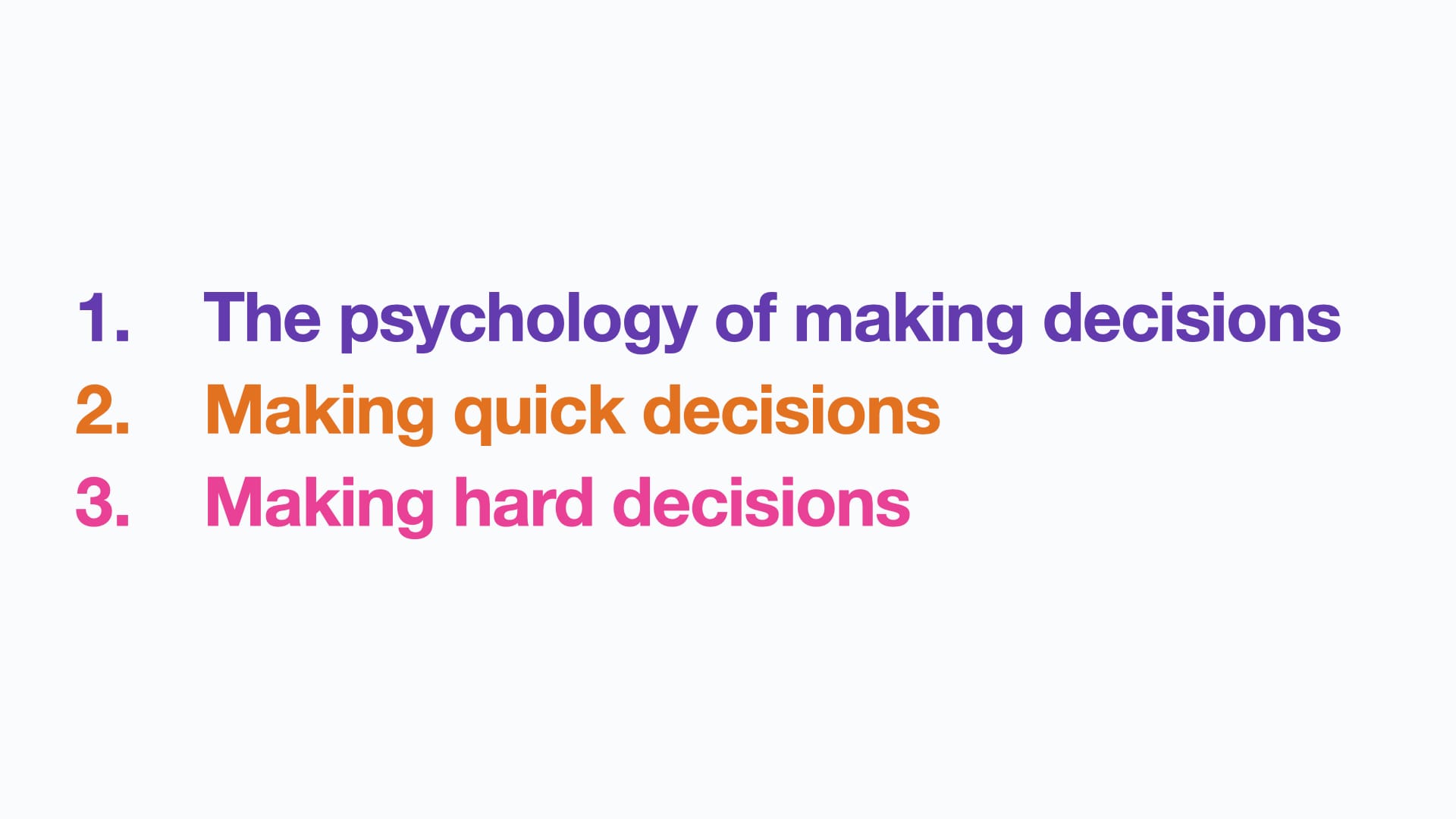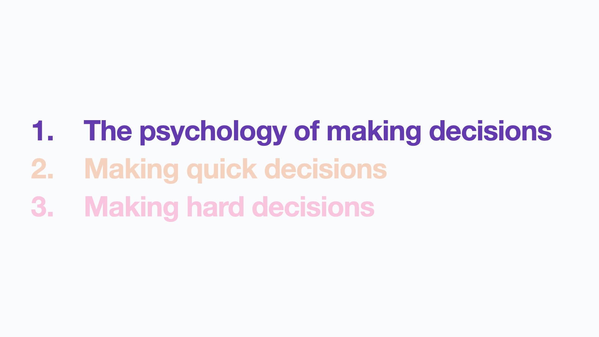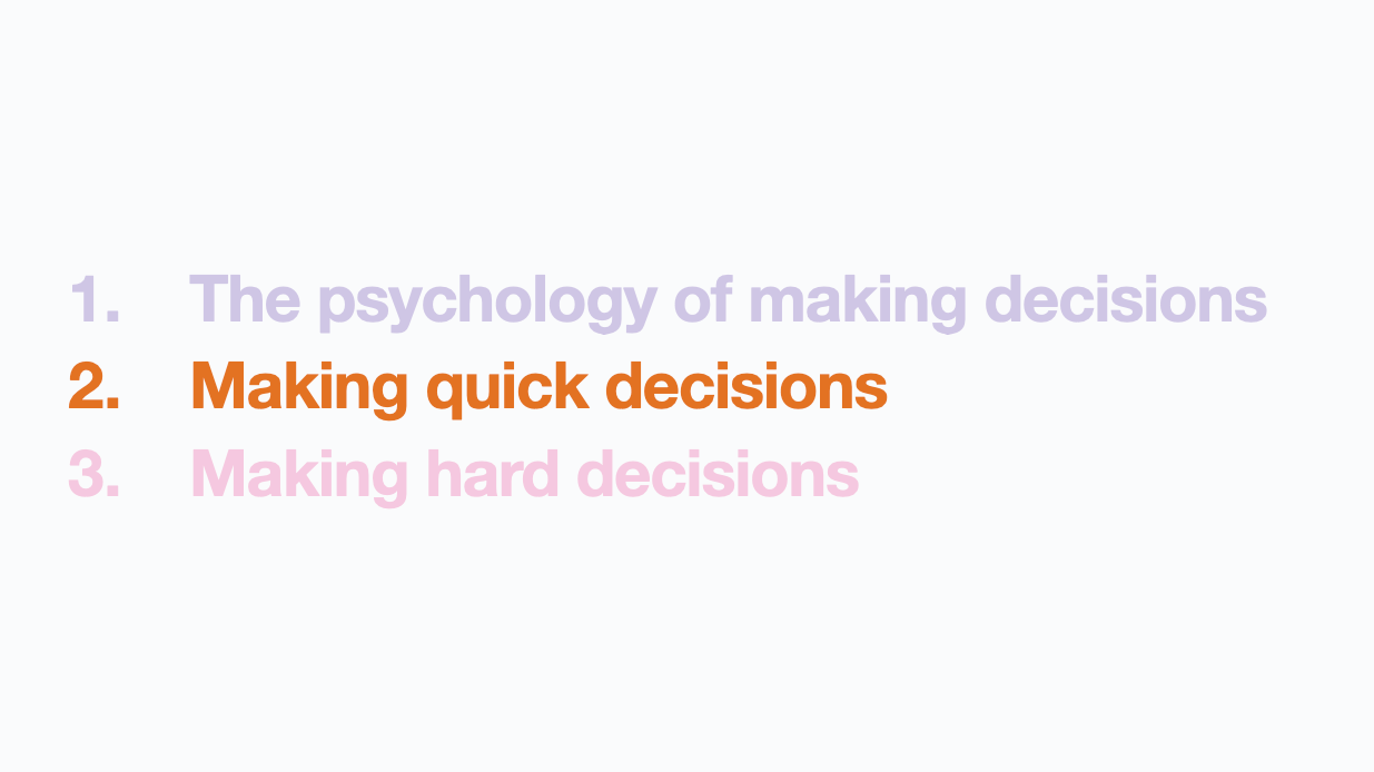 And then look at some practical tips, first: to see how to figure out if we can be decisive and make a choice quickly.