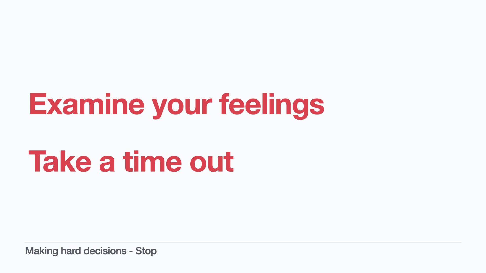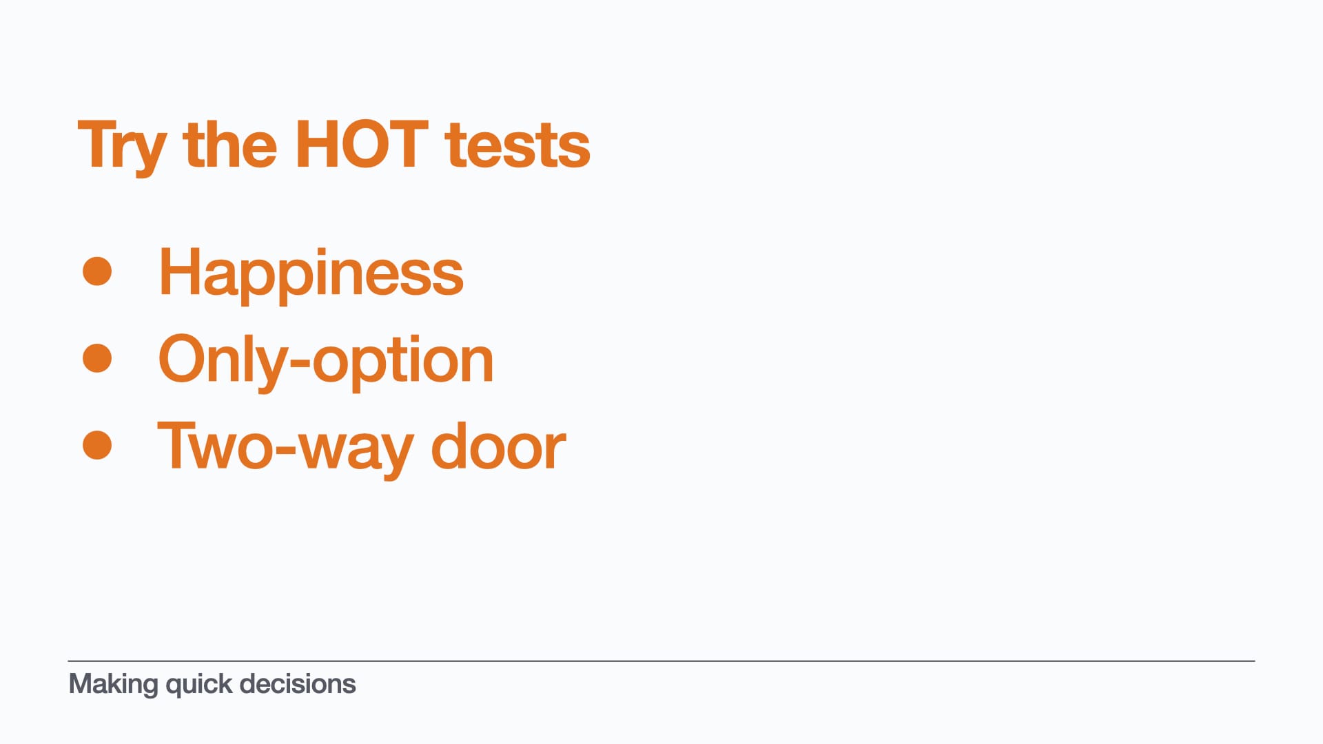 Some decisions feel urgent - perhaps somebody is waiting for an answer, or you’re just busy with other work. But you’ve done the HOT tests and know that you shouldn’t make a quick decision.
