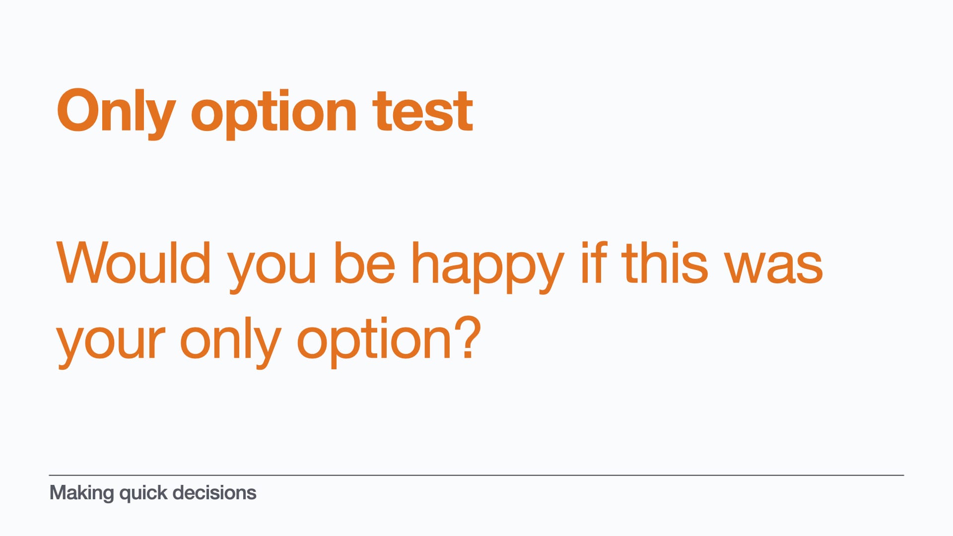 O is for the "Only option" test.