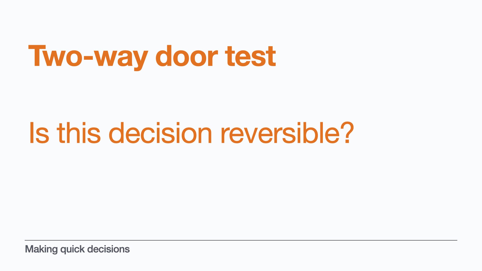 T is for the "Two-way door" test. Is this decision easily reversible? Can you get a do-over?