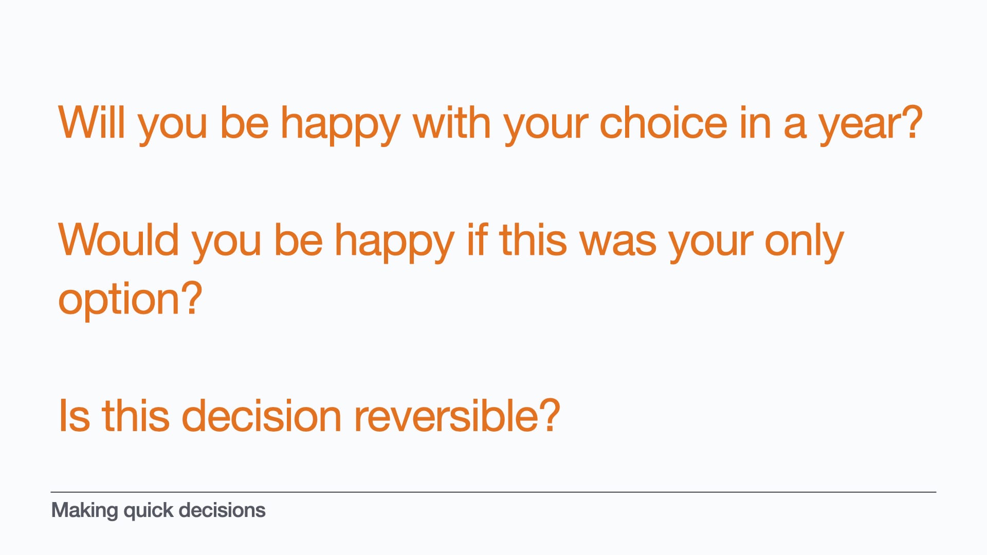 And recognising these types of decisions, and making them quickly, will give you more time for the decisions that aren’t so simple.