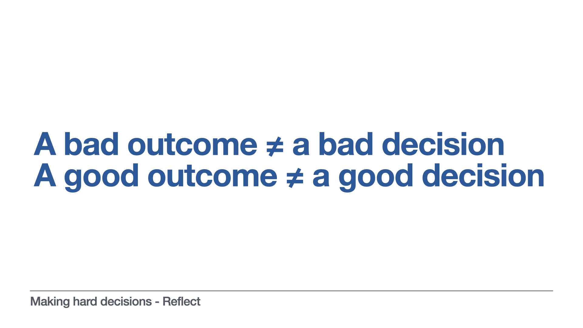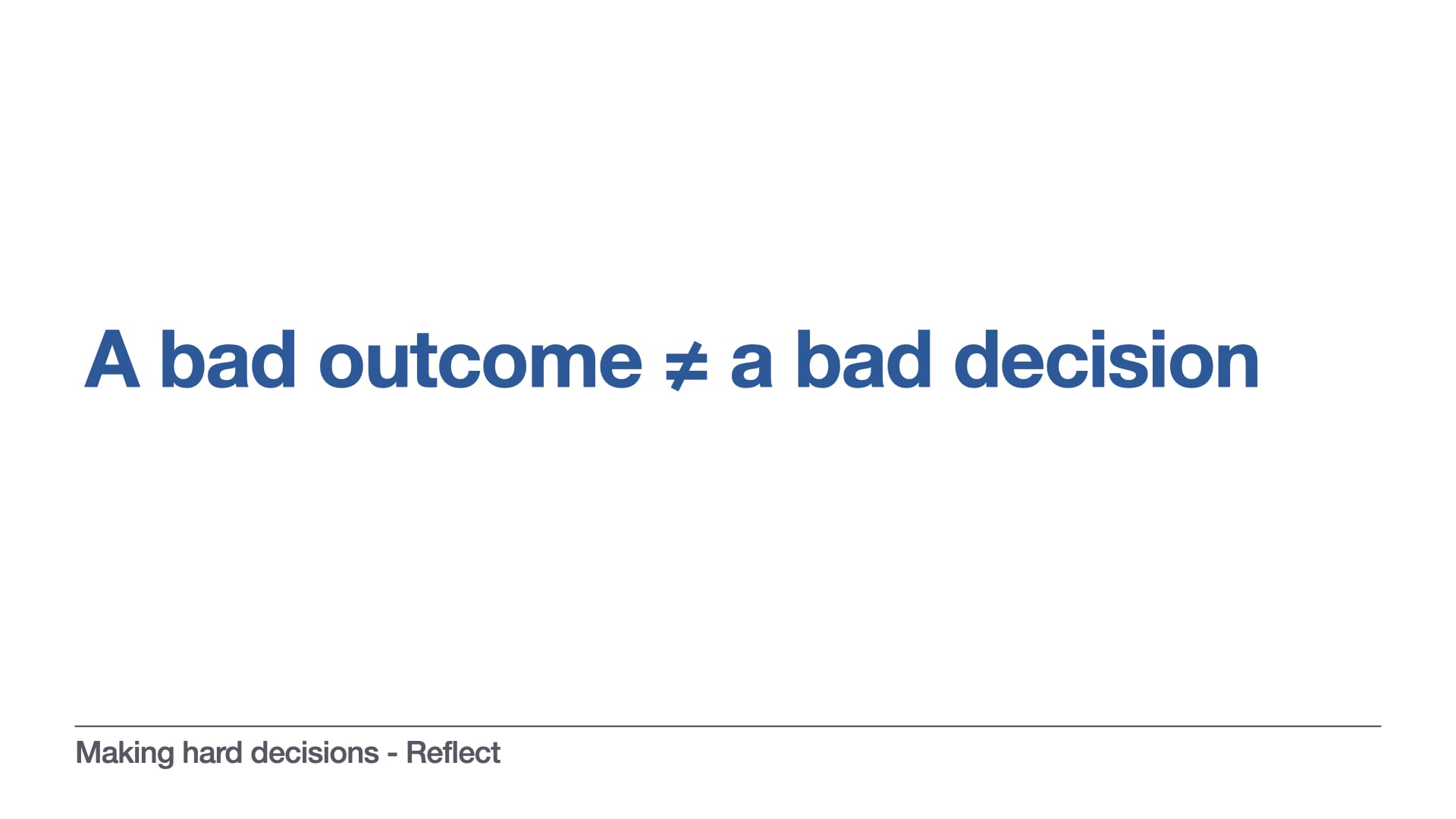 But we don’t have to beat ourselves up about it, because we know we followed the steps, we examined our beliefs, we did our homework, we didn’t make quick decisions when we should have made slow ones. But regardless of whether we get the outcome we want or not, we must still always interrogate the decision making process that led to it.